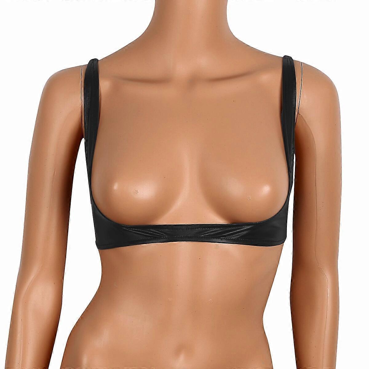 2020 Women Wetlook Latex Bra Nipple Open Bust Cupless Bralette Lingerie Crop Top