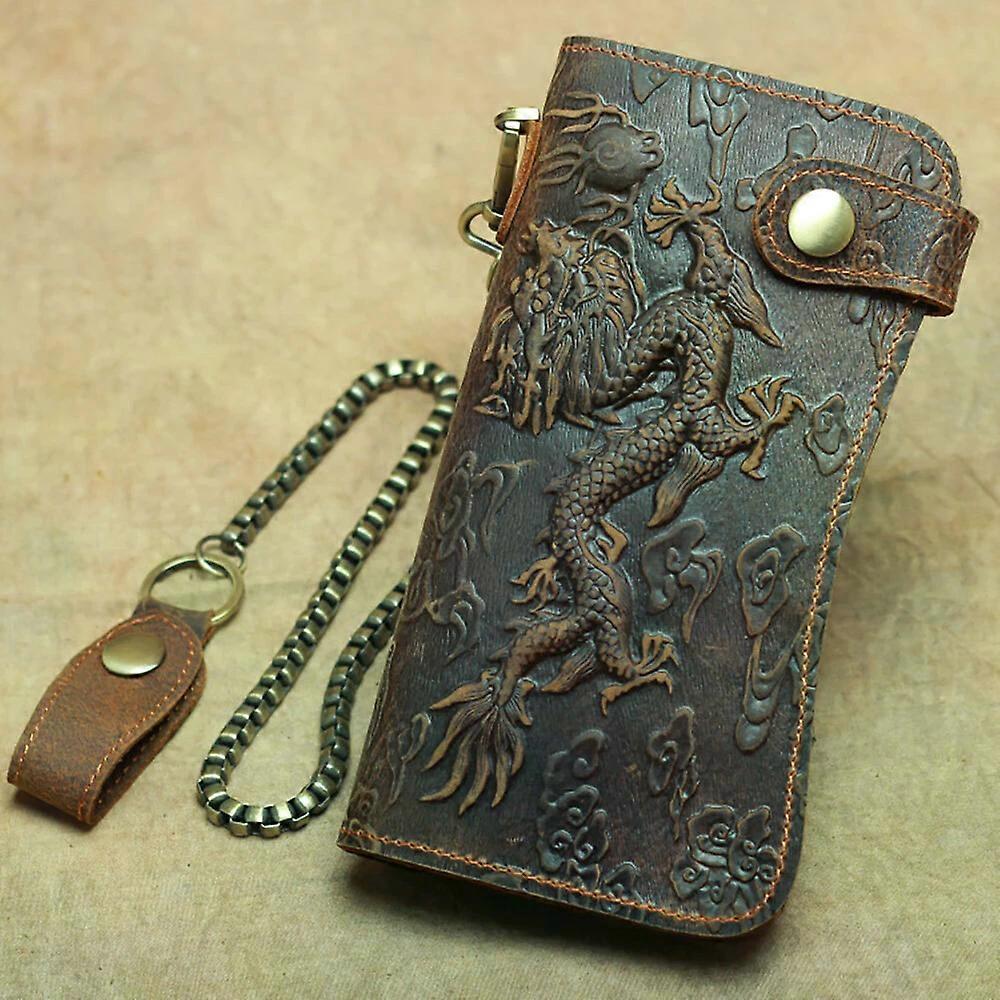 Men's Leather Credit ID Cards Holder Long Chain Wallet Biker Trucker heavy Thick