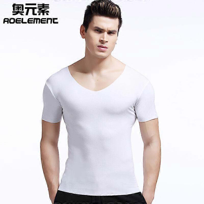 Men‘s Undershirts Ultra Thin T-Shirt Top Tee Short Sleeve V-Neck Elastic Jerseys