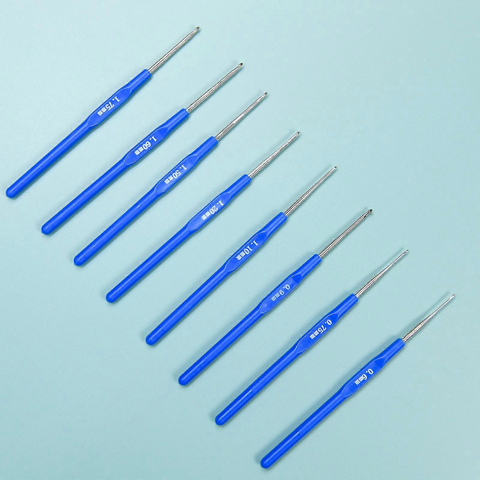 8/9/17pcs Blue Crochet Hook set Knitting Needle Soft Rubber Handle Crocheting Weave Sweater Scarf Sewing Yarns Knitting Tools