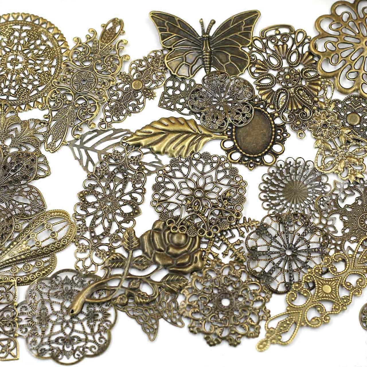 Embellishments Random Mixed Rose Flower Snow Pattern Filigree Wraps Alloy Craft Jewelry DIY Accessories