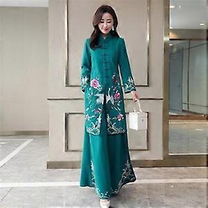 2PCS Women Aodai Chinese Style Loose Long Dress Qipao Cheongsam Traditional Suit
