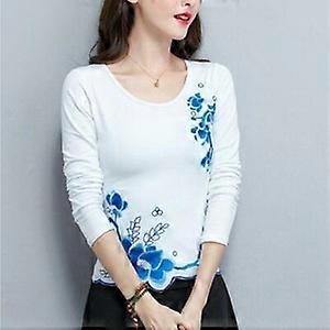 Lady Chinese Floral Embroidery Shirts Retro T-shirt Blouse Top Cotton Ethnic New
