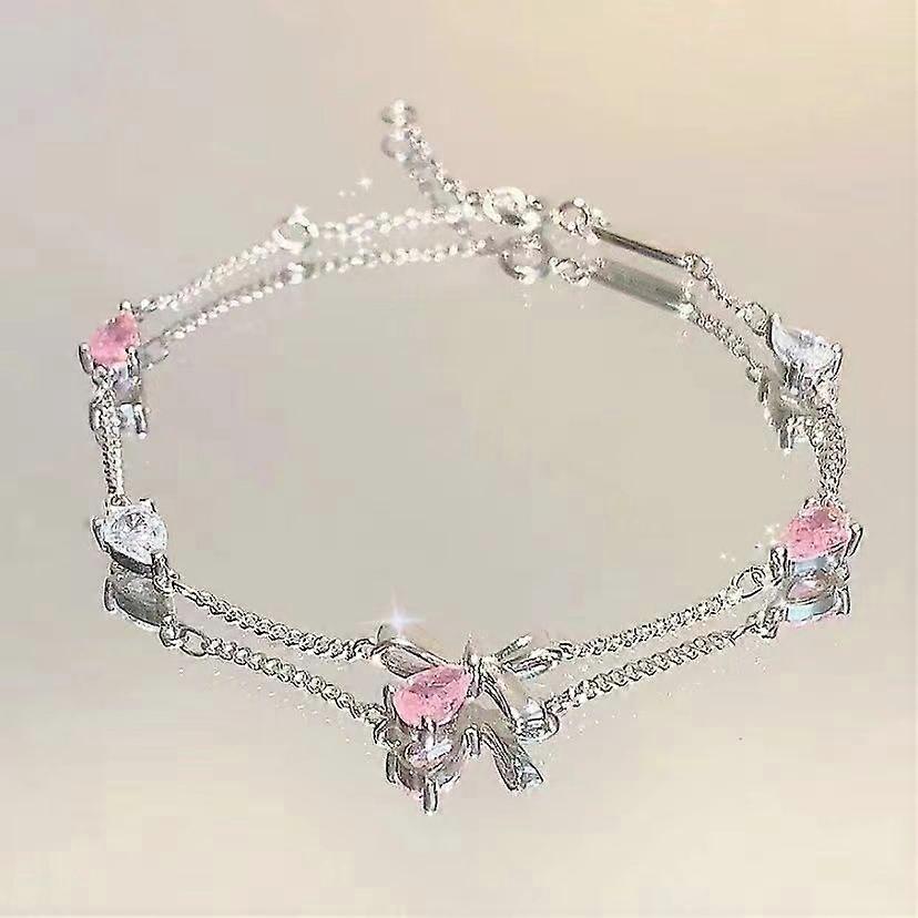Steel Fun New Women Bracelet Shiny Pink Zircon Butterfly Cherry Blossom Hand Chain for Girls Friendship Gift Y2k Accessories