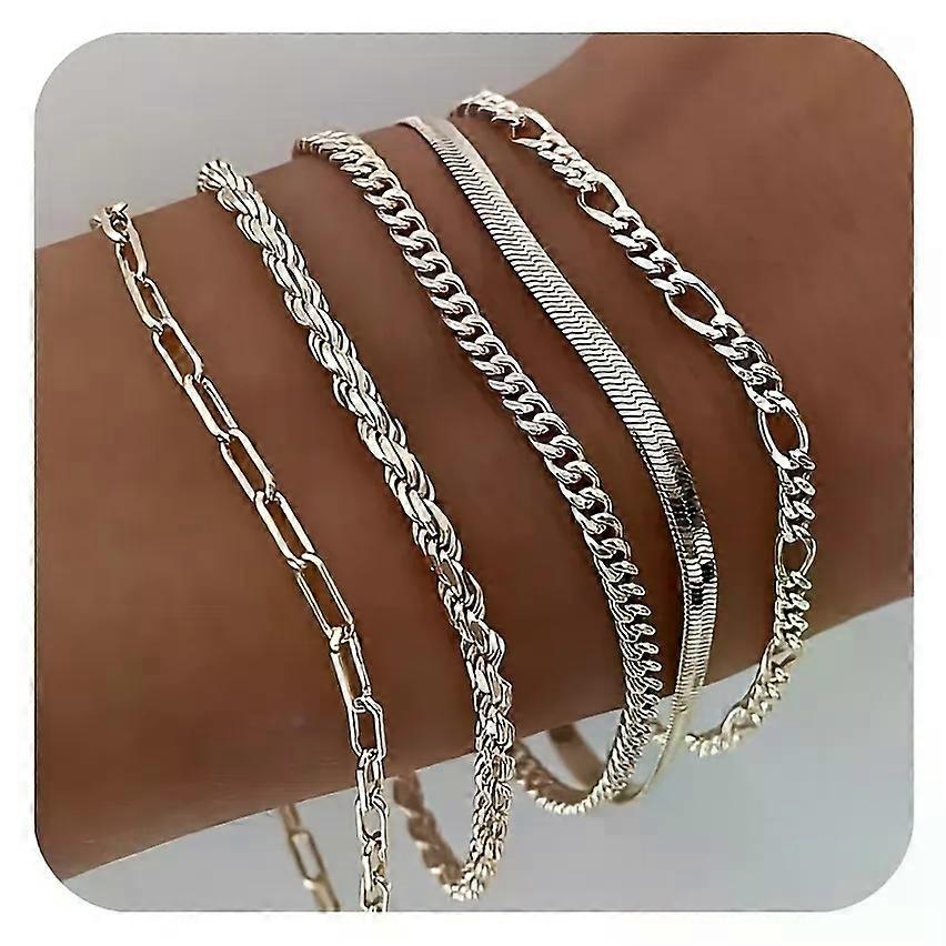 Vintage Punk Style Women's Bracelet Set Silver Bracelet Plated Gold bracelet Cuban & Paper Clip Chains Fashion Accessories