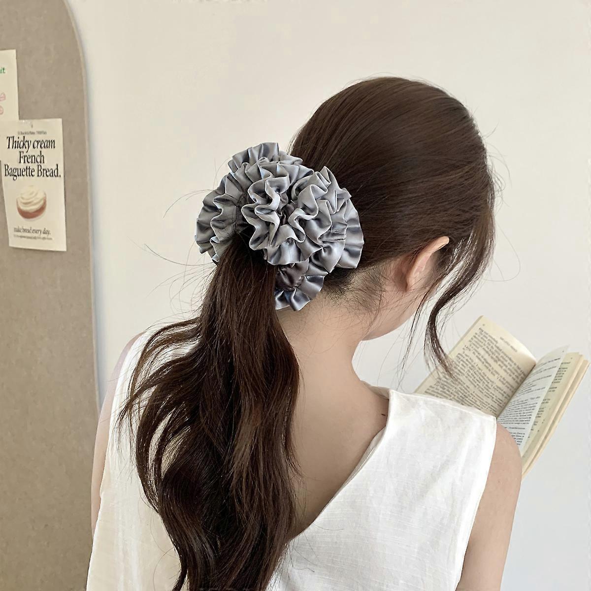 1pc Korean-style floral solid color high-end satin pleated large hair tie,suitable for bun and ponytail hairstyle