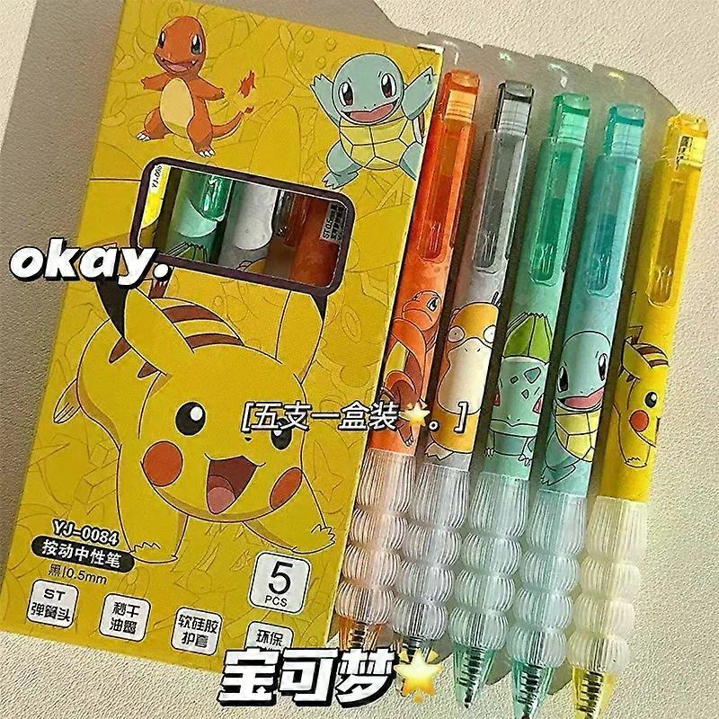 5pcs Pokemon Pen Set Pikachu Squirtle Charmander, Press Gel Pen Cute Anime School Office Supplies Stationery Gift for Kids