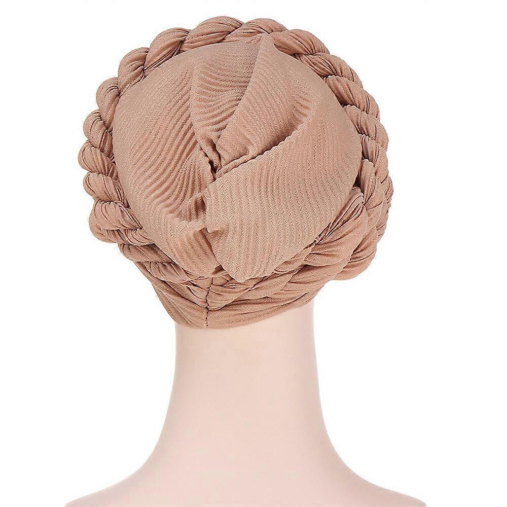 Women Braid Turban African Auto Gele Hat Muslim Hijab Head Wrap Bonnet Chemo Cap