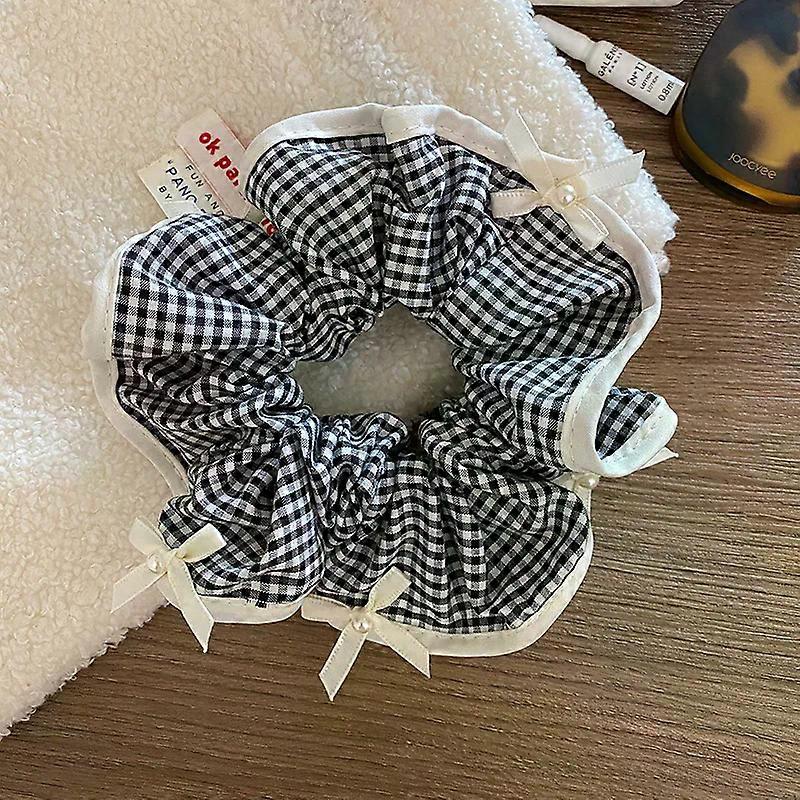 Women Large Scrunchies Black White Checked Plaid Scrunchie Ponytail Holder Tie Hair Hoop Scrunchy Rubber Band Hair Accessories