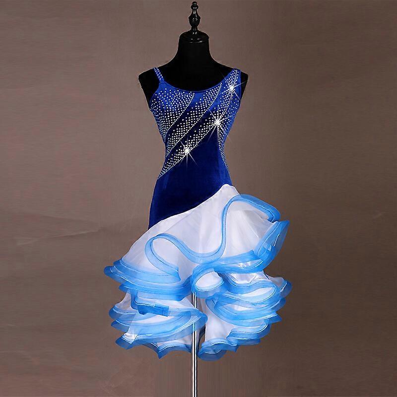 Latin Dance Dress Salsa Tango Cha cha Ballroom Rhinestone Competition Dress 373