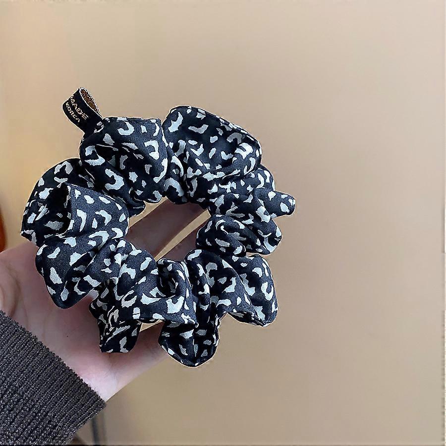 Pink Cofffe Leopard Print Fabric Hair Scrunchies for Women Girls Daily Hair Ties Retro Lace Ponytail Holders Trendy Headpiece M