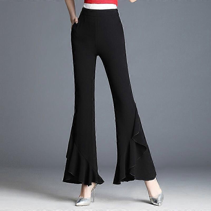 Women Chiffon Flare Pants Bell-Bottom Ruffle Dance Yoga See Through Trouser Long