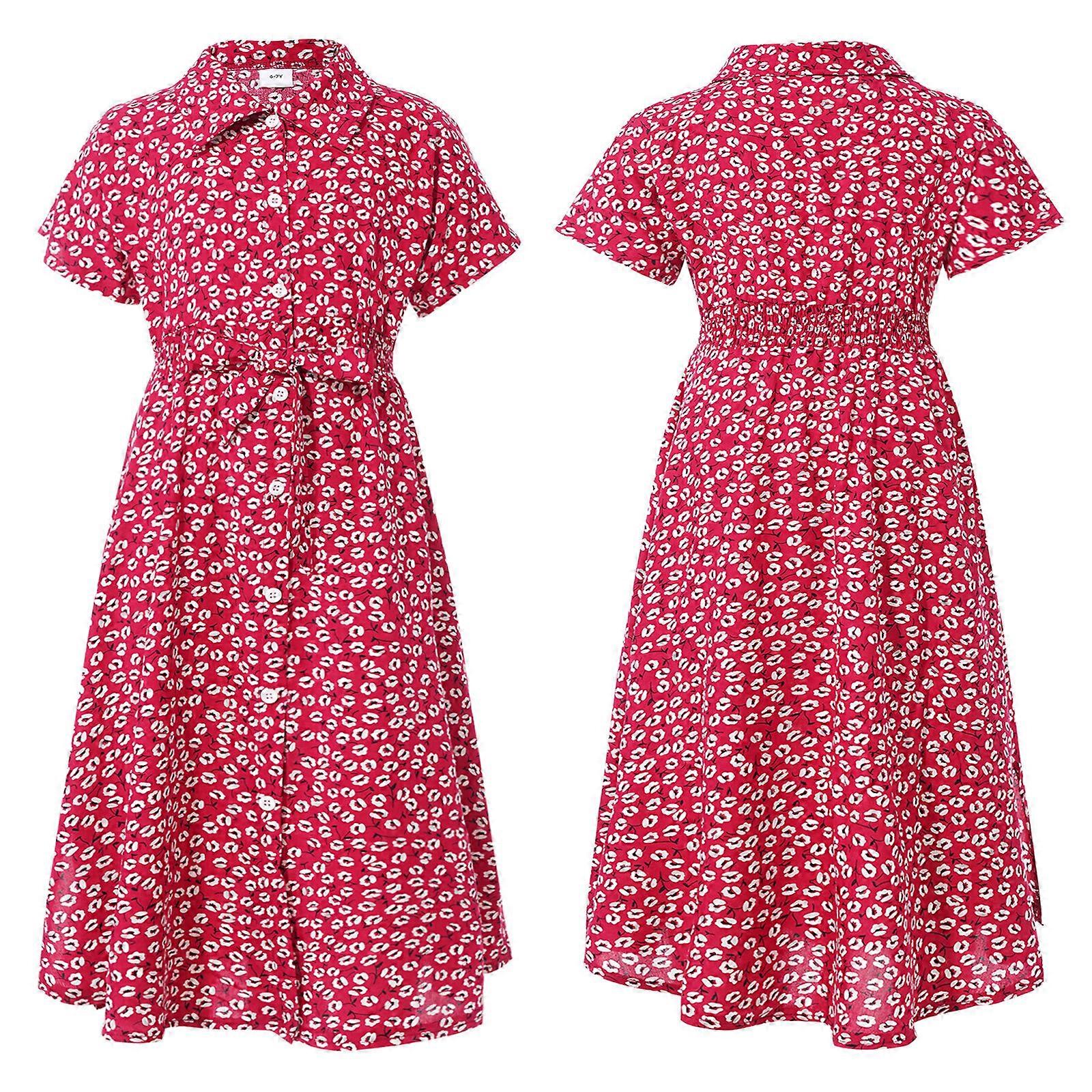 Kids Girls Summer Floral Print Dress Short Sleeve Sundress Casual Beach Dresses