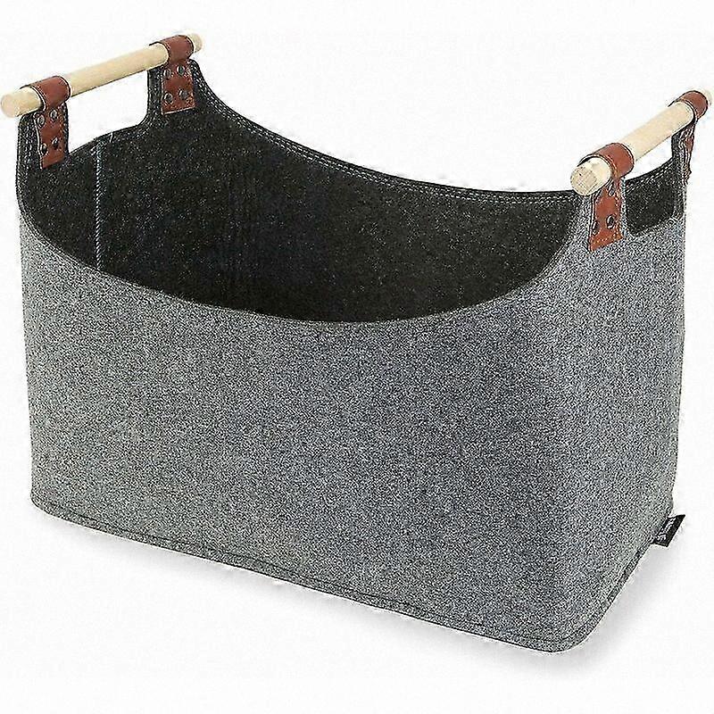 Large Foldable Felt Log Basket with Handles, Storage Bag for Fireplace Wood, Logs, Toys (Dark Grey)