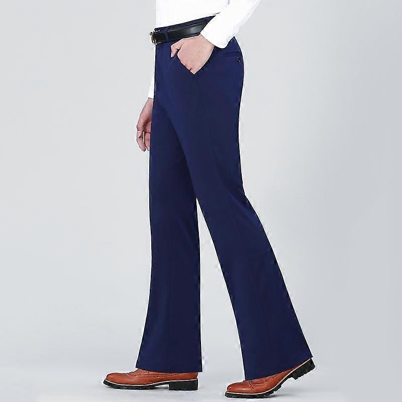 Men Slim Bell Bottom Flare Pants Retro 70s Stretch Formal Dress Long Trousers