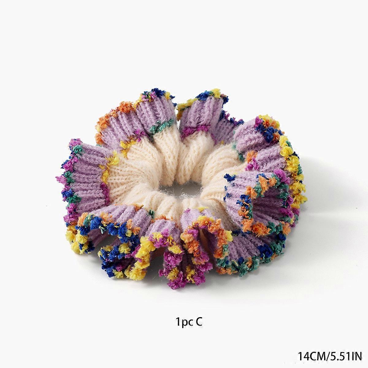 1pc Korean-style color-block knitted thick hair tie with flower pleats, elegant ponytail hair rope, elastic band for women