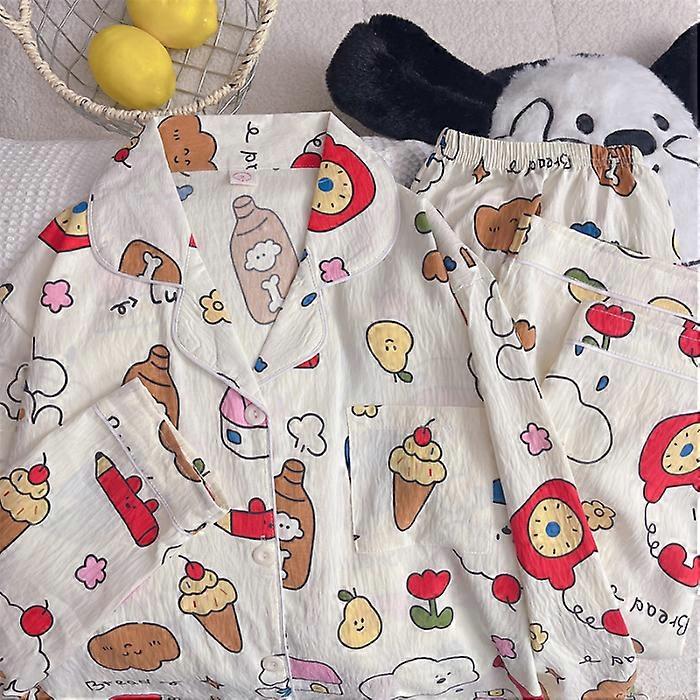 Spring New Lapel Neck Design Pajamas Women's Kawaii Dot Bear Letter Print Pajamas Set Sweet Cute Girl Women's Sleep & Lounge