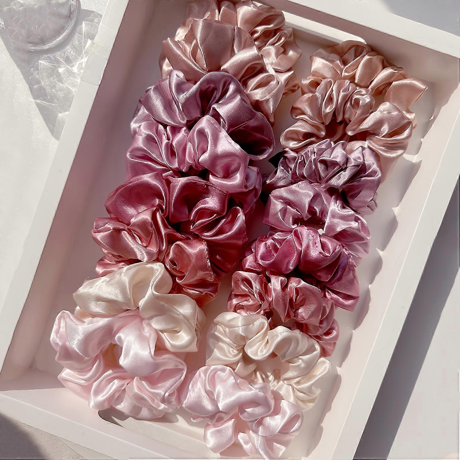 16-Piece Set Soft Satin Hair Ties Pink & Brown Suitable for All Settings Hair Bands for Women Girls