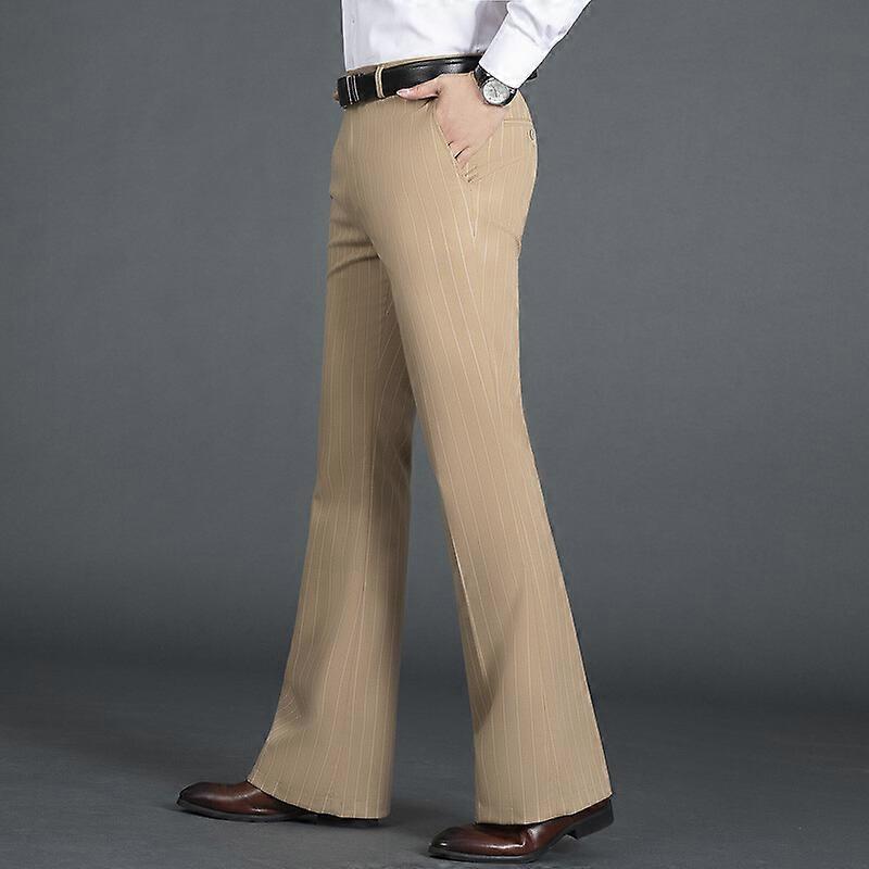 Vintage Style Men Bell Bottom Pants Flared Dress Trousers Striped Slim Business