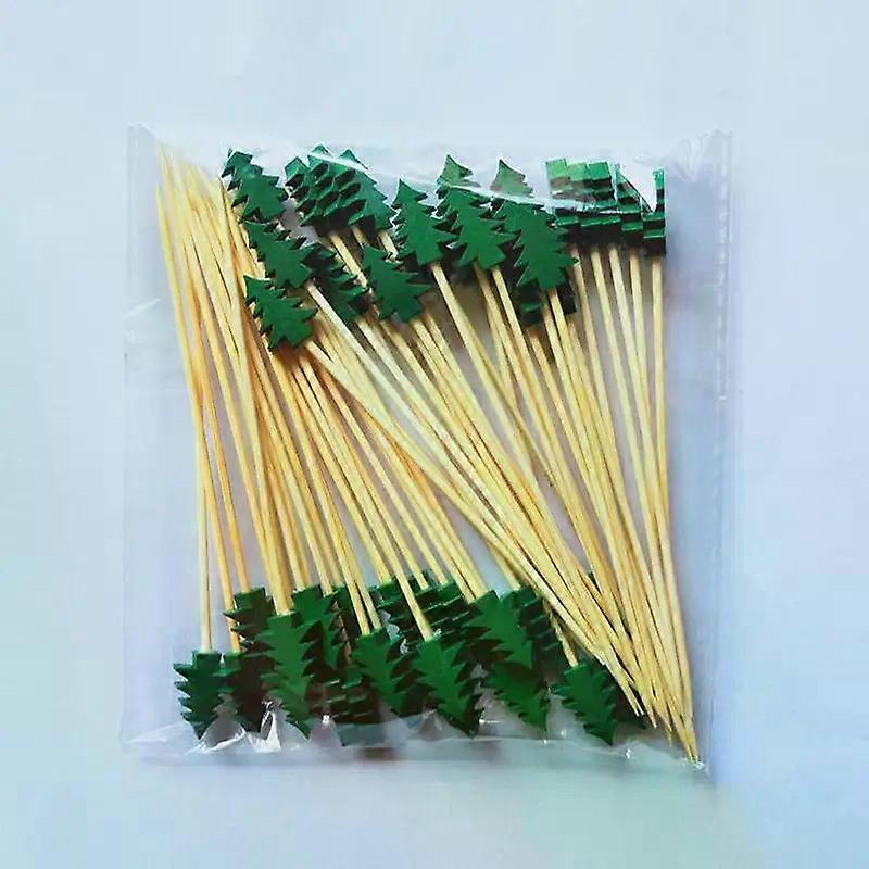 50PCS Christmas Bamboo Skewer Cocktail Picks Cupcake Topper Disposable Food Dessert Toothpicks Fruit Sticks Party Supplies