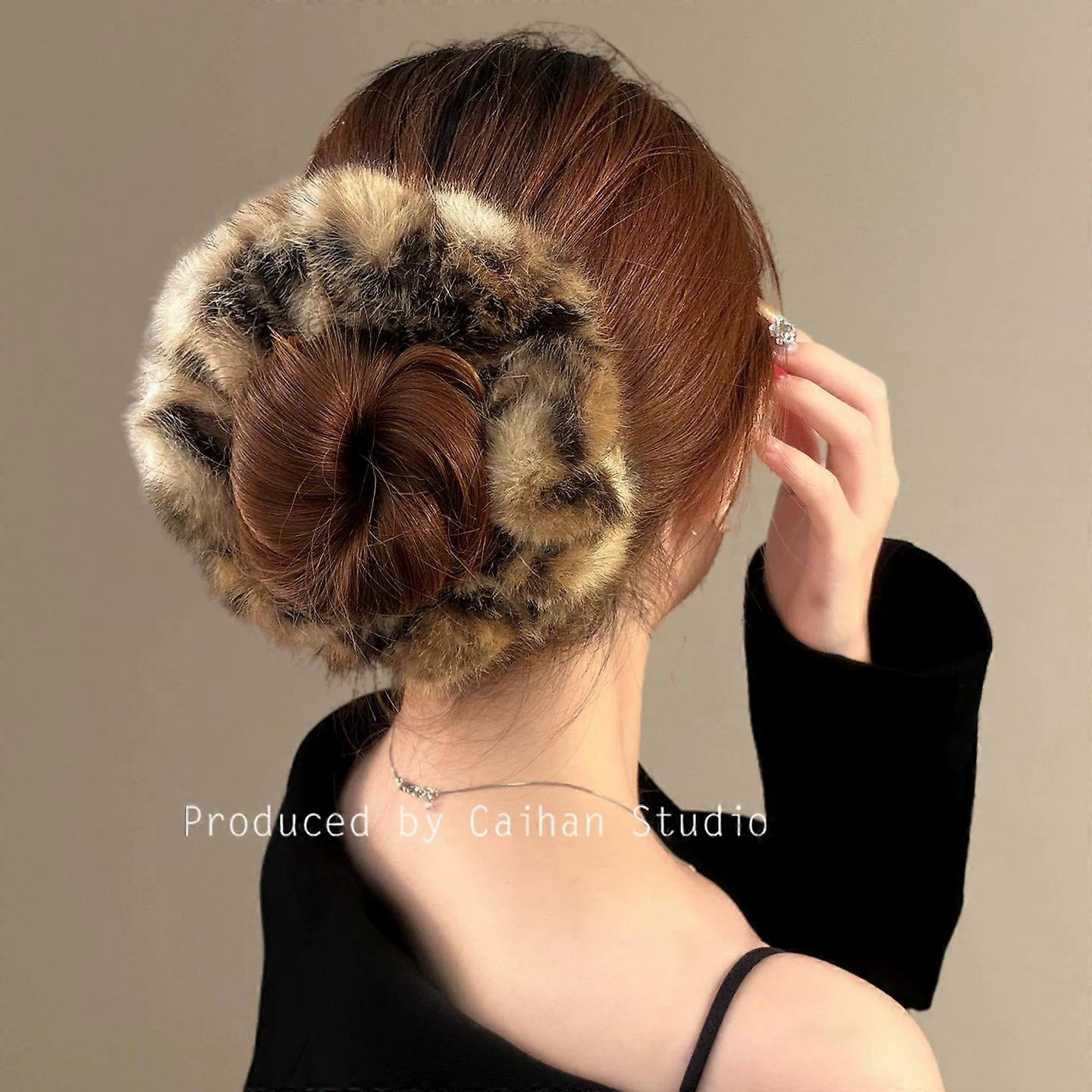 1pc Autumn and Winter Fashion Plush Leopard Print Hair Scrunchie, Elegant Hair Tie, High Elasticity and Durable Hair Band