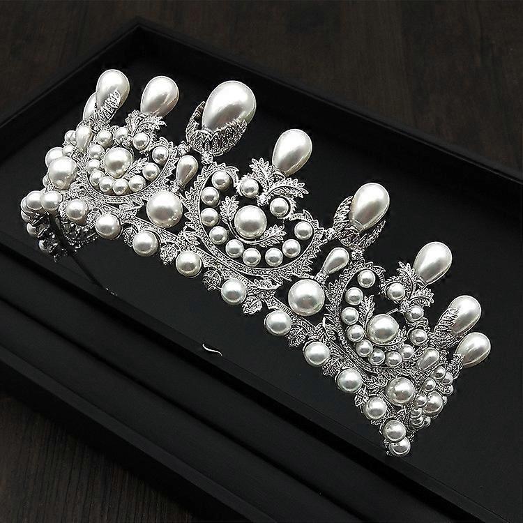 Luxury All CZ Cubic Zirconia Pearl Queen Princess Prom Tiara Crown For Women