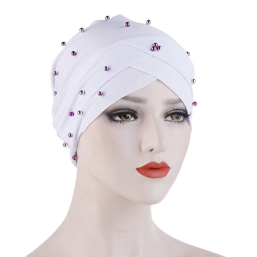 Indian Beanie Beaded Hijab Hat Women Muslim Hair Loss Cancer Islamic Bonnet Cap