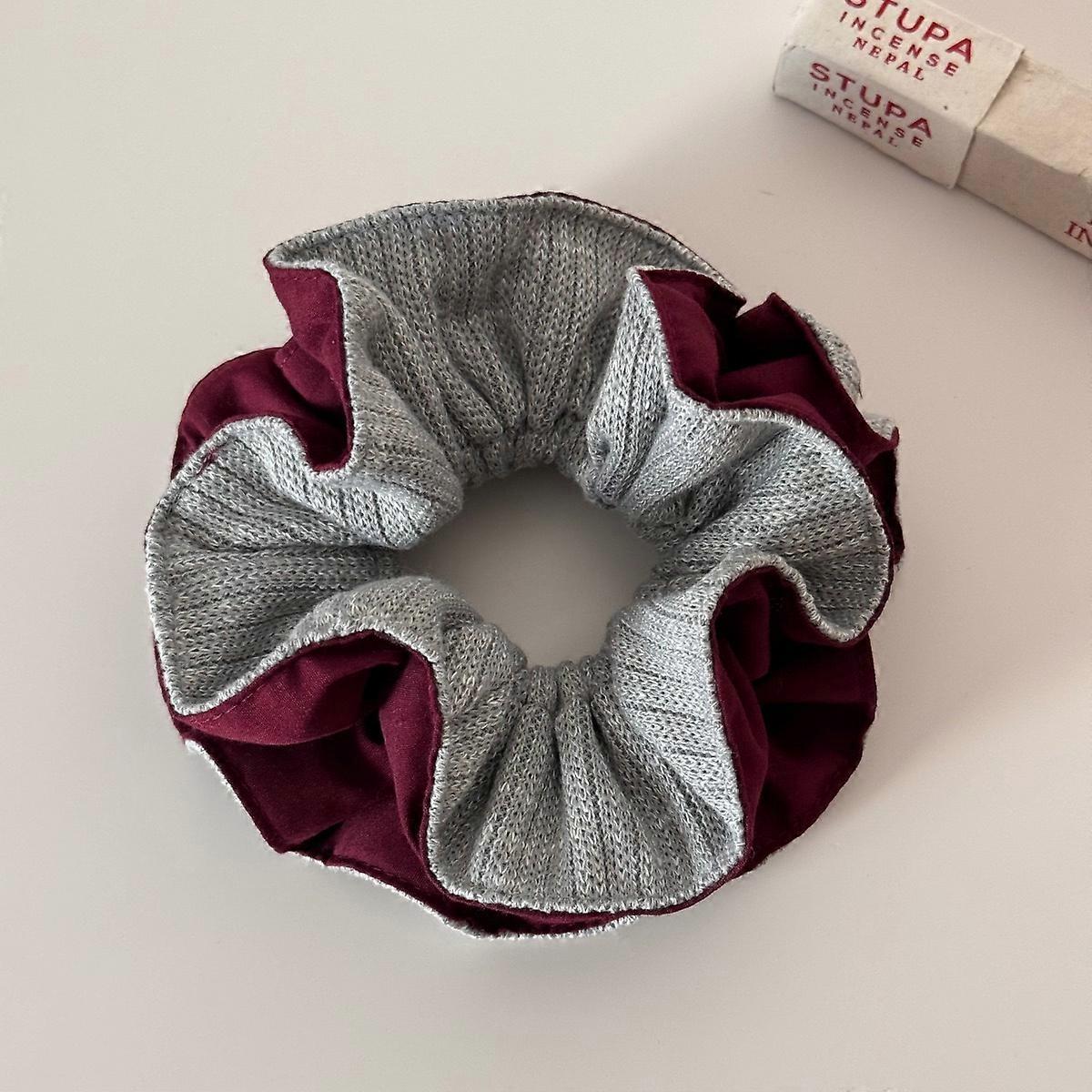 1pc Korean-style autumn/winter knitted scrunchie, fashionable double-layer contrasting color pleated splicing yarn bun hair tie