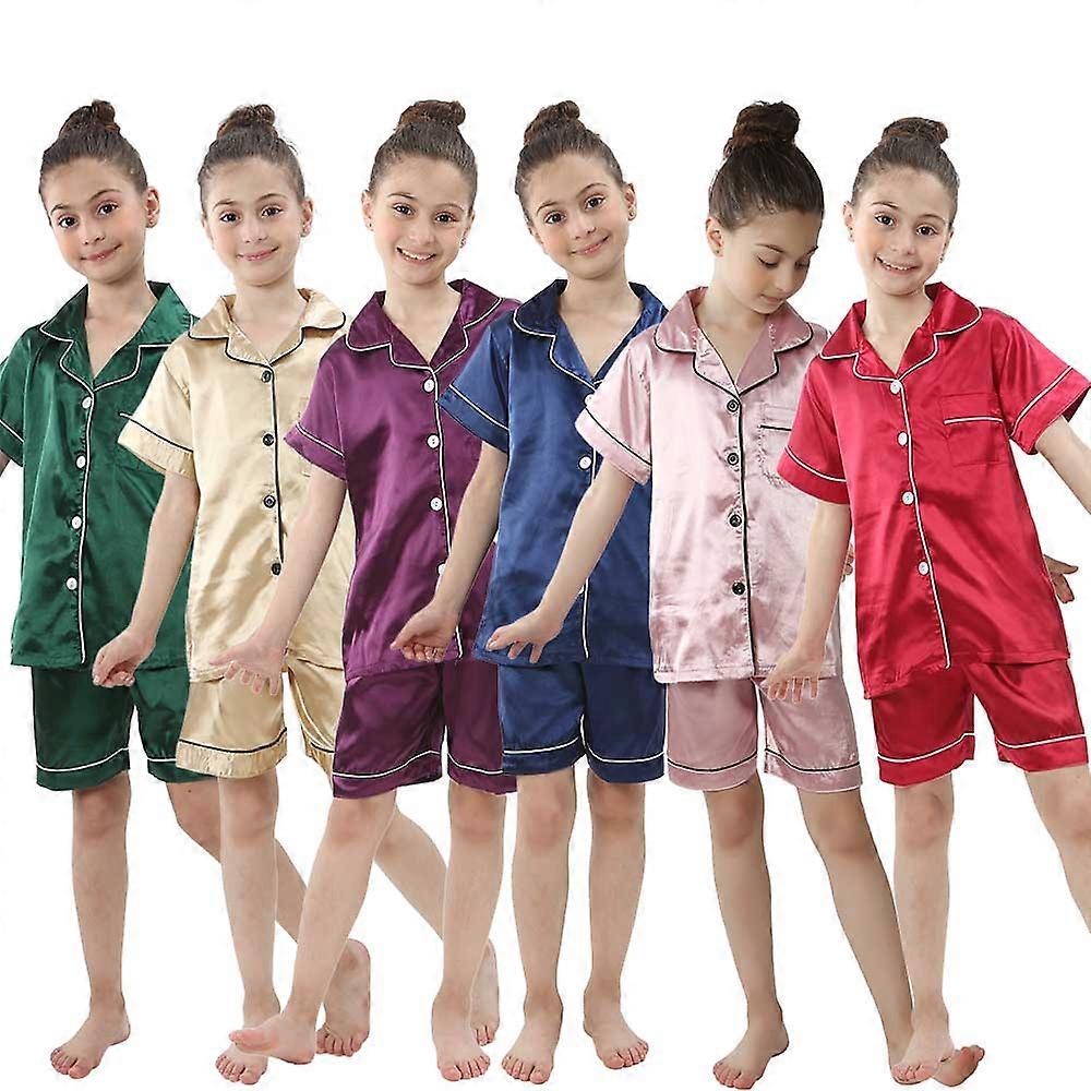 Summer Short Sleeve Satin Pajamas Silk Fabric Girls Sleepwear Boys Nightwear Solid Children's Pajama Sets Pyjamas Boy Baby Wear