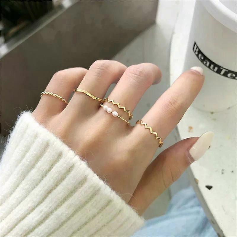 5Pcs/set Gold Color Heart Rings Set For Women Vintage Geometric Cross Pearl Butterfly Finger Rings Female Trendy Jewelry Gift