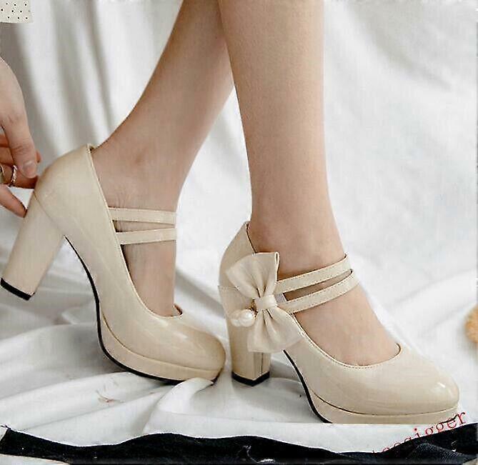 Fashion Womens Bowtie Block High Heels Mary Janes Dating Party Shoes Plus Size