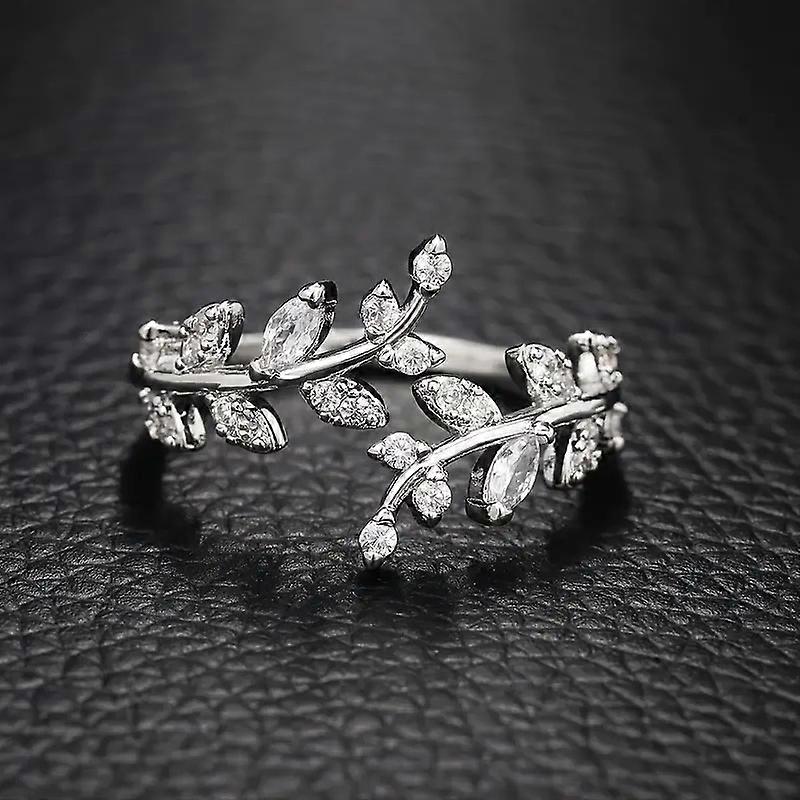 Korean Leaf Design Opening Rings For Women Sparkling Cubic Zirconia CZ Adjustable Ring Party Daily Wear Fashion Jewelry Gift