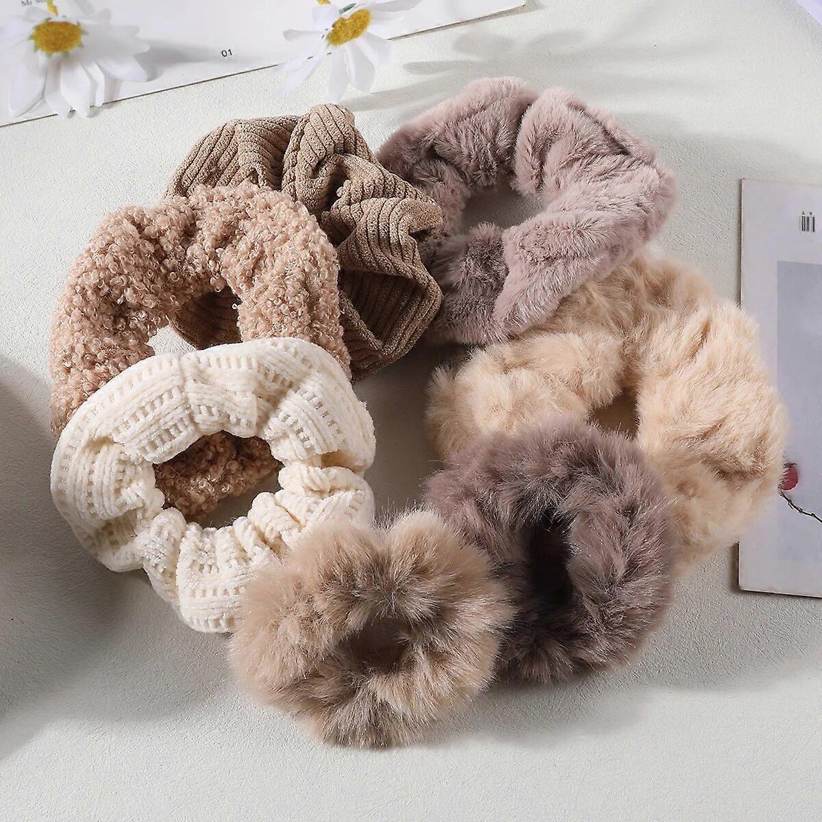 7 Pcs/Set Women Hair Scrunchies Set Plush Solid Hair Band for Girls Ponytail Holder Rubber Bands Hair Ties Hair Accessories