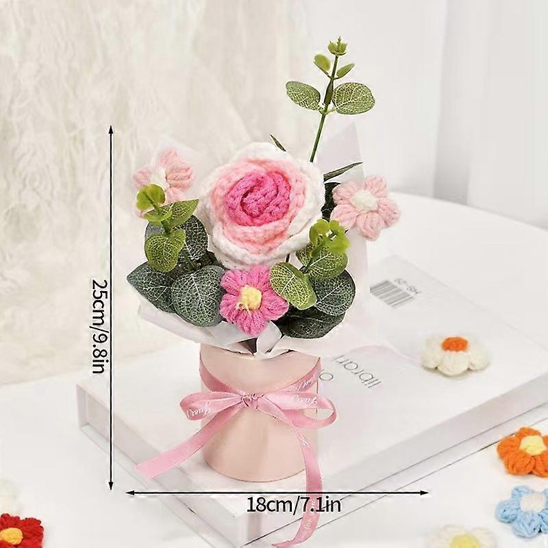 Knitted Flower Bouquet Crochet Rose Flowers Hugging Bucket Christmas Gifts Living Room Desk Decoration Valentine's Day Gift