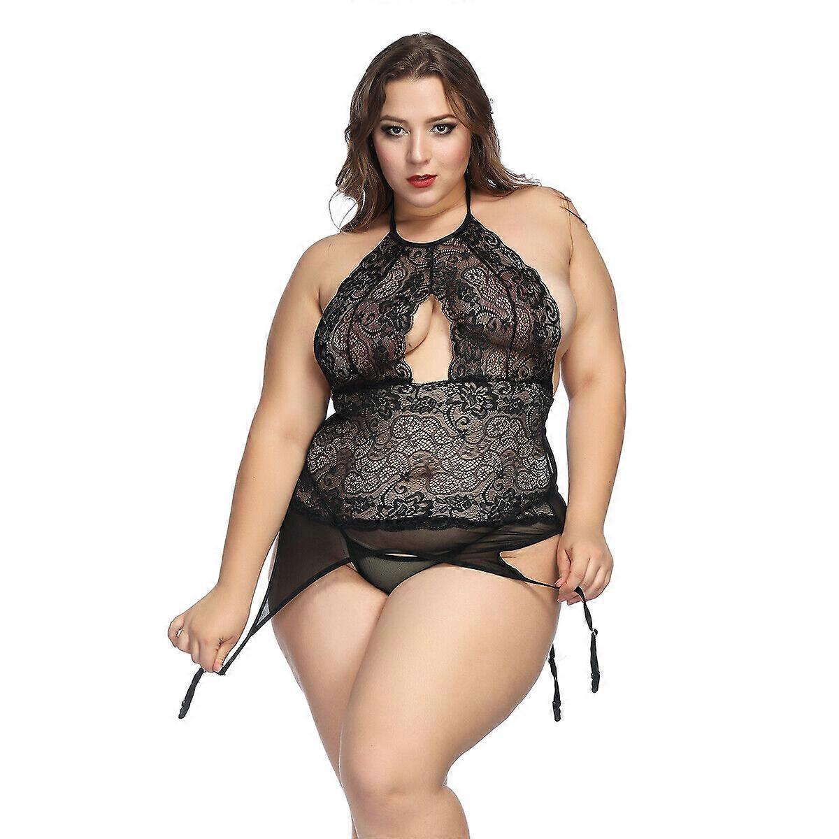 Plus Size Sexy Lady Lingerie Lace Babydoll Leotard Thong Set Underwear Sleepwear