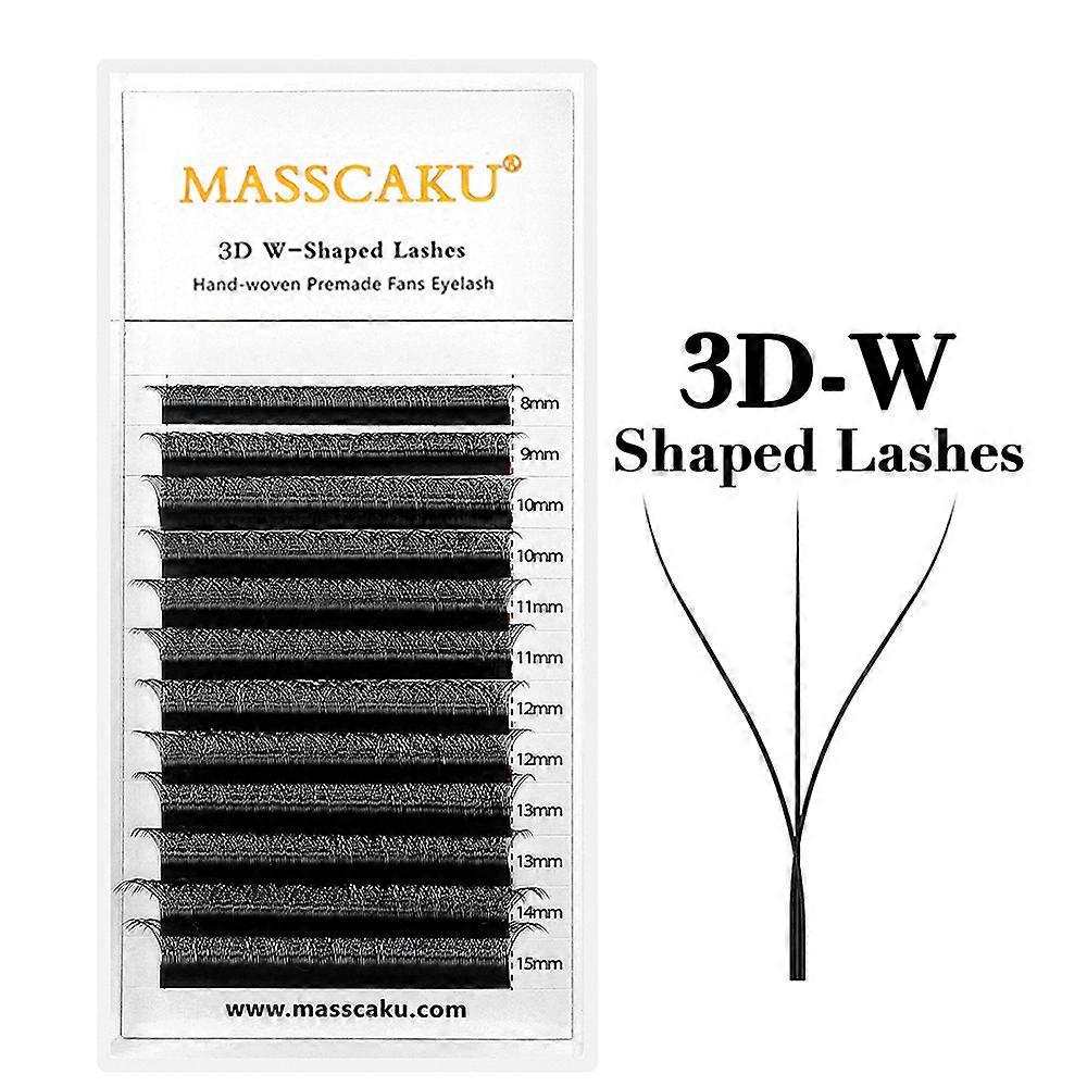 MASSCAKU 12Lines Premium Mink 3D 4D 5D 6D Pre-made False Eyelash W Shape Soft and Natural Individual Lash Extension Supplies
