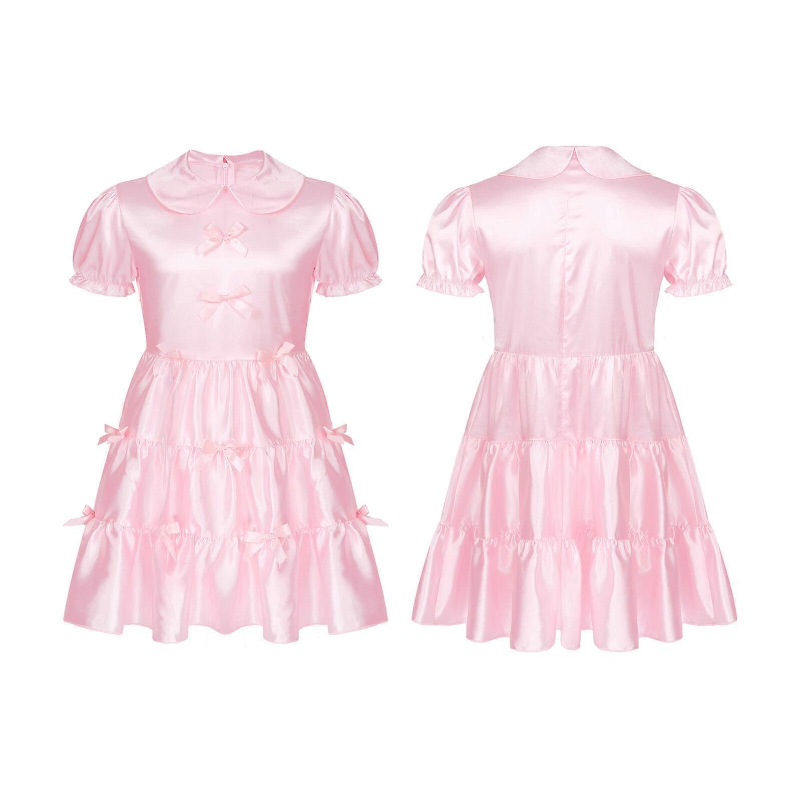 Men Sissy Shiny Satin French Maid Uniform Dress Crossdressing Lingerie Nightwear