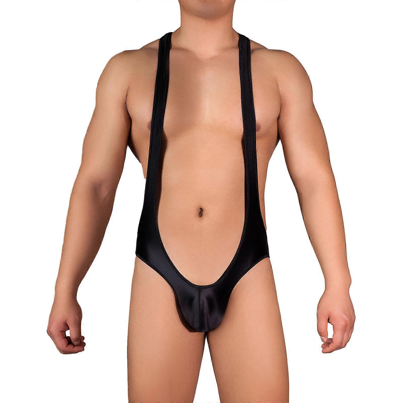 Men's Bodysuit Shiny Glossy Bulge Pouch Racer-back Open Butt Jockstrap Leotard