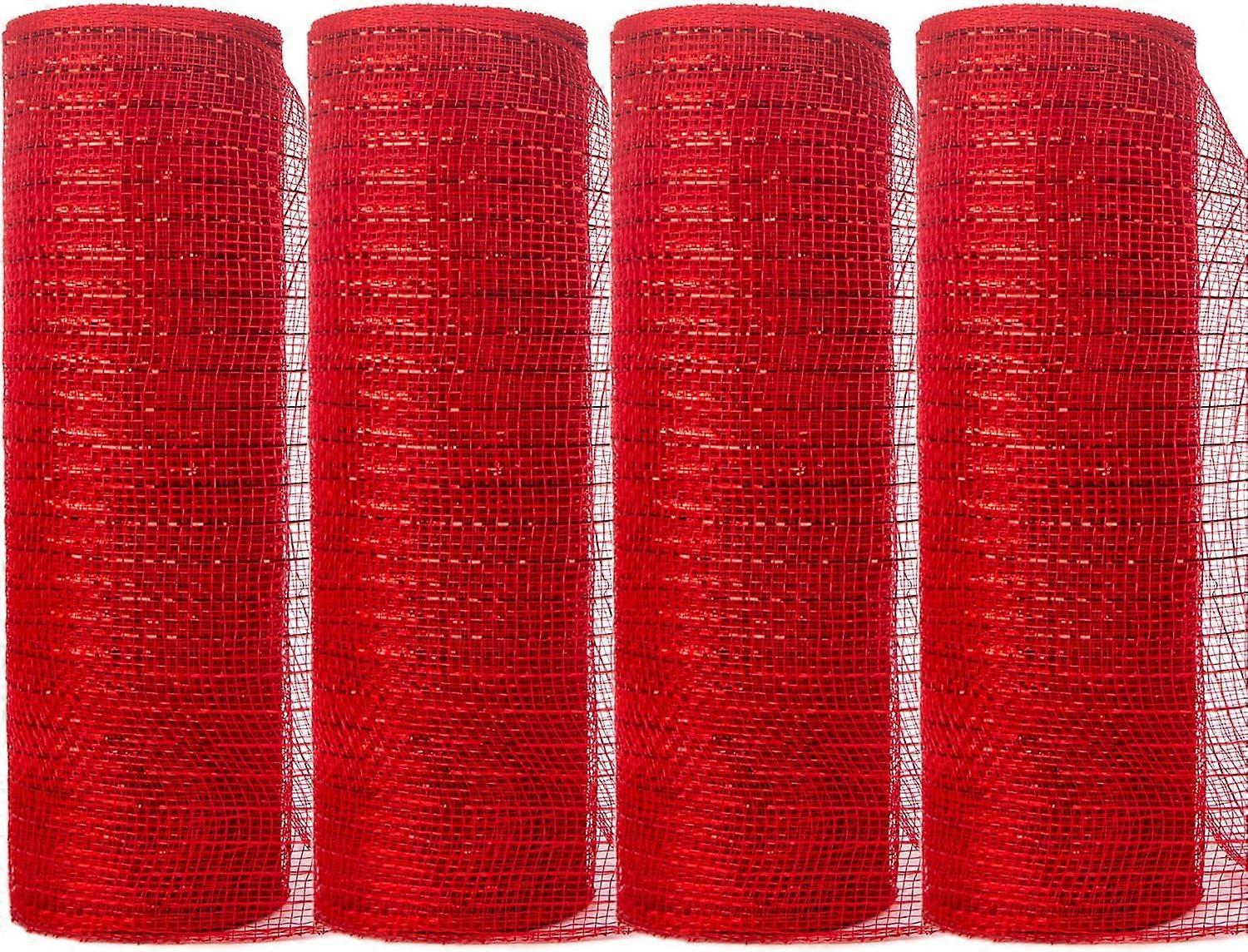 Red Christmas Decorative Mesh ribbon 10 Inch x 30 Feet Poly Mesh Ribbon with Metallic, Ribbon Mesh for holiday 4 Rolls