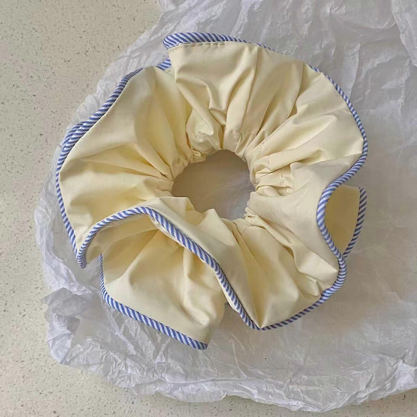 1PC Scrunchies Light Blue & Yellow With Blue Striped Edge, Cute Vintage Hair Accessories For Women Girls, Daily Styling & Gifts
