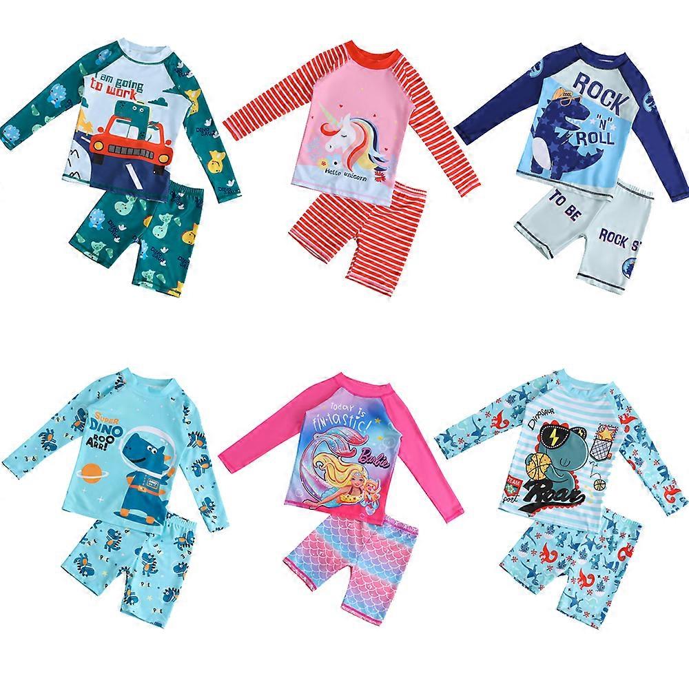 Children Boy Girl Swimsuit Swimwear 2pcs Quick Drying Sun Protection Dinosaur Print Long Sleeves Bathing Suit Swimming Costume