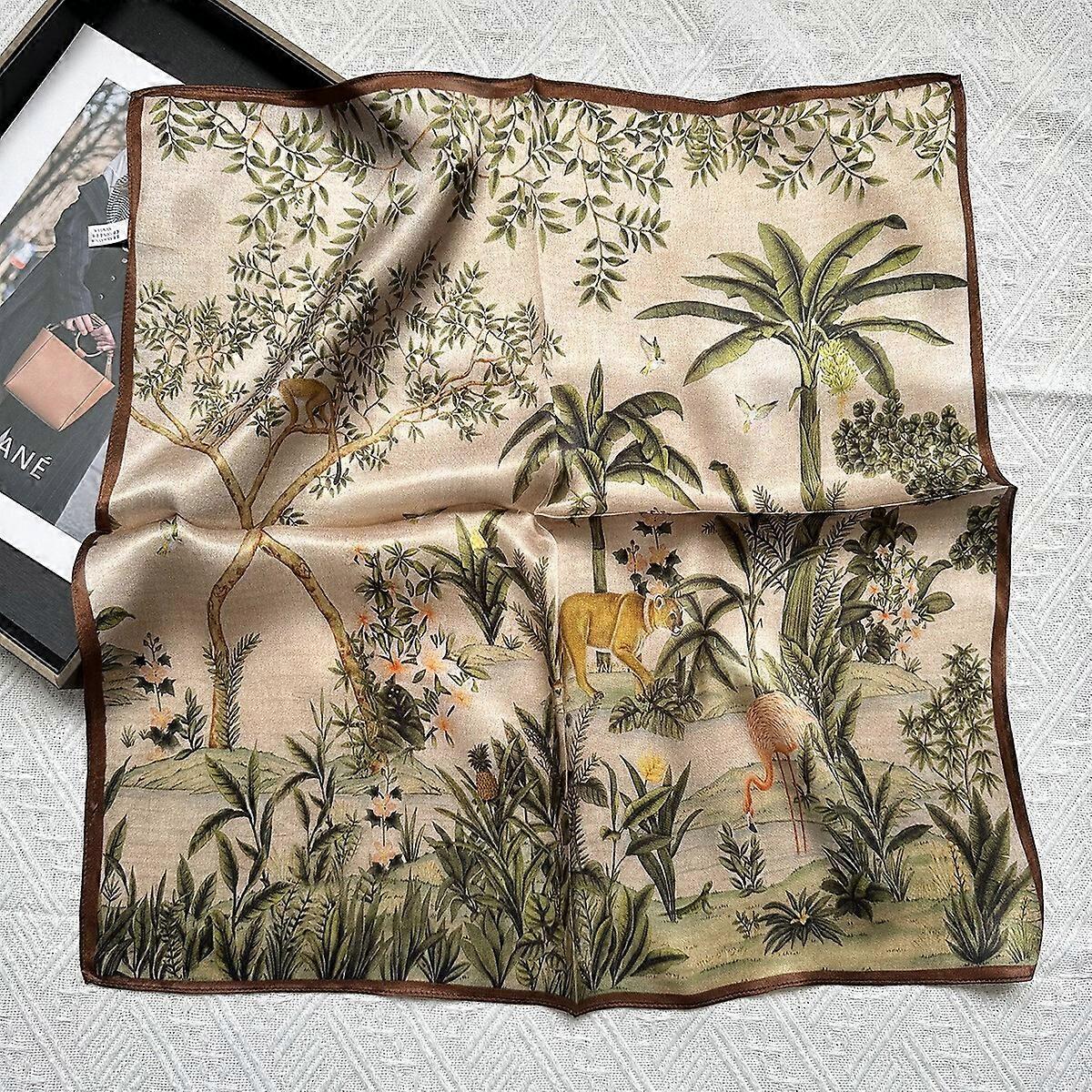 100% Silk 21'' Scarfs For Women Lightweight Square Satin Wrap Forest Lion 53*53