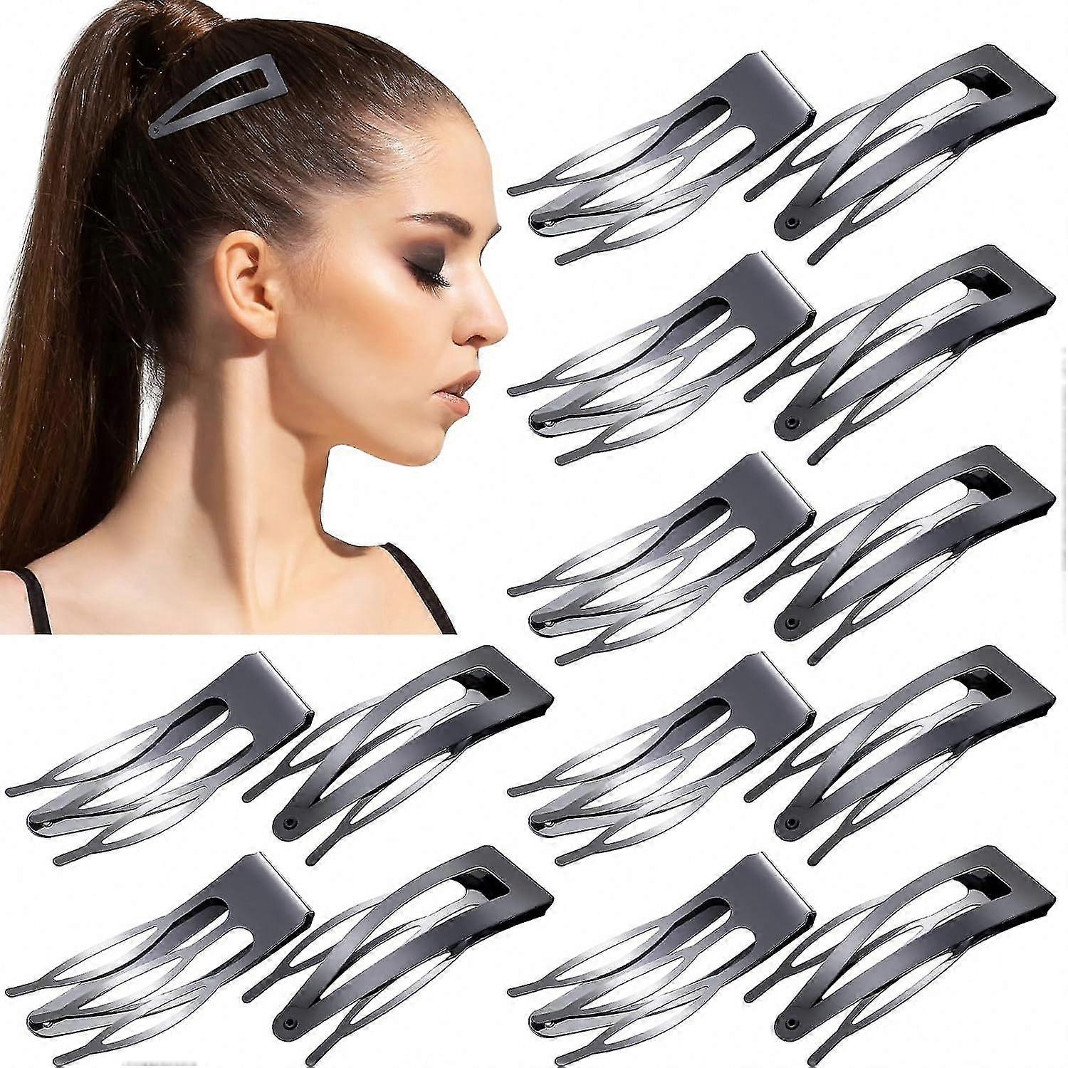 24-Pack Metal Snap Hair Clips, Double Grip Barrettes for Women, 2 Inch Black Hair Accessories for Styling and Salon Use