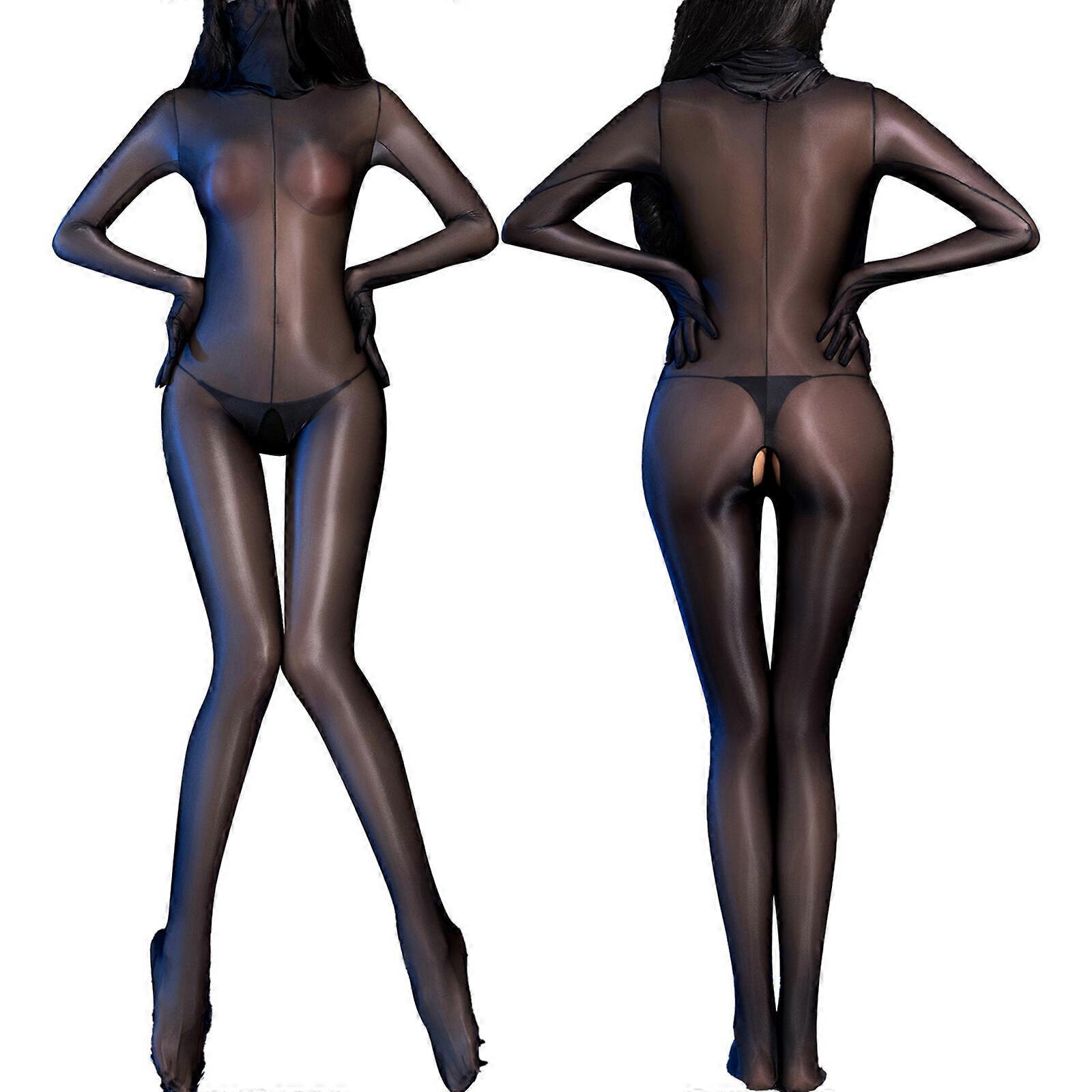 Women Glossy Pantyhose Shiny Crotchless Tights Bodysuit Oil Shiny Bodystockings