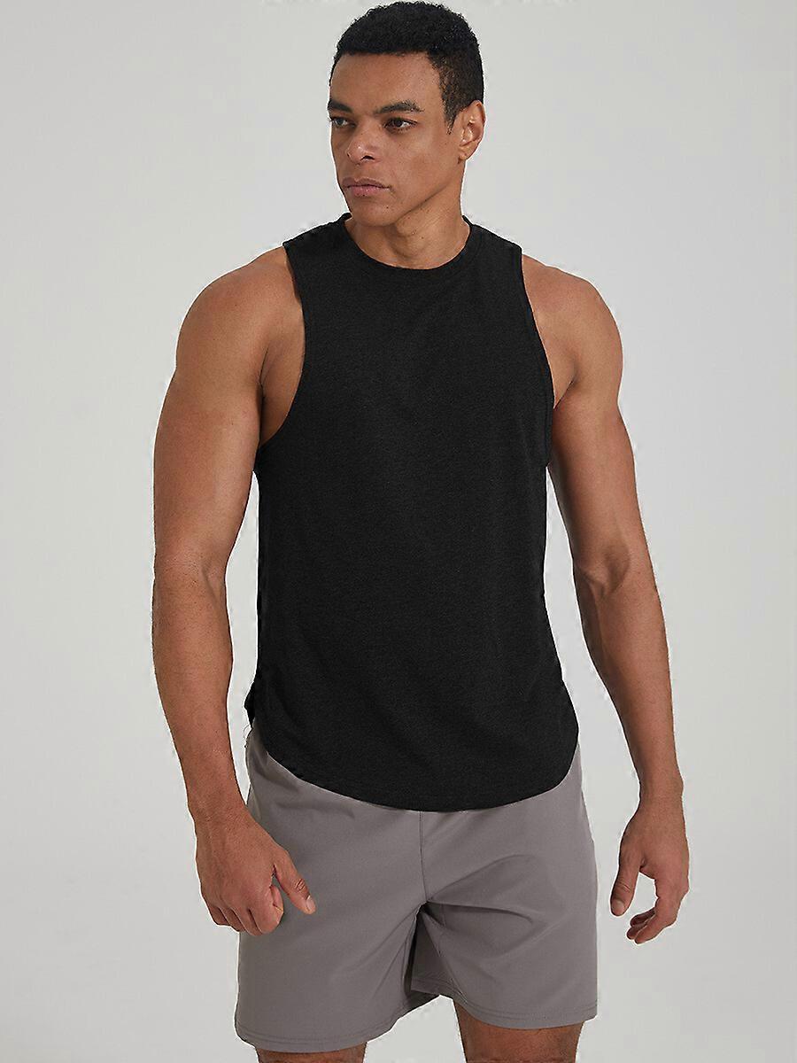 Men Gym Sleeveless Muscle Stringer Tank Top Round hem Training Bodybuilding Vest