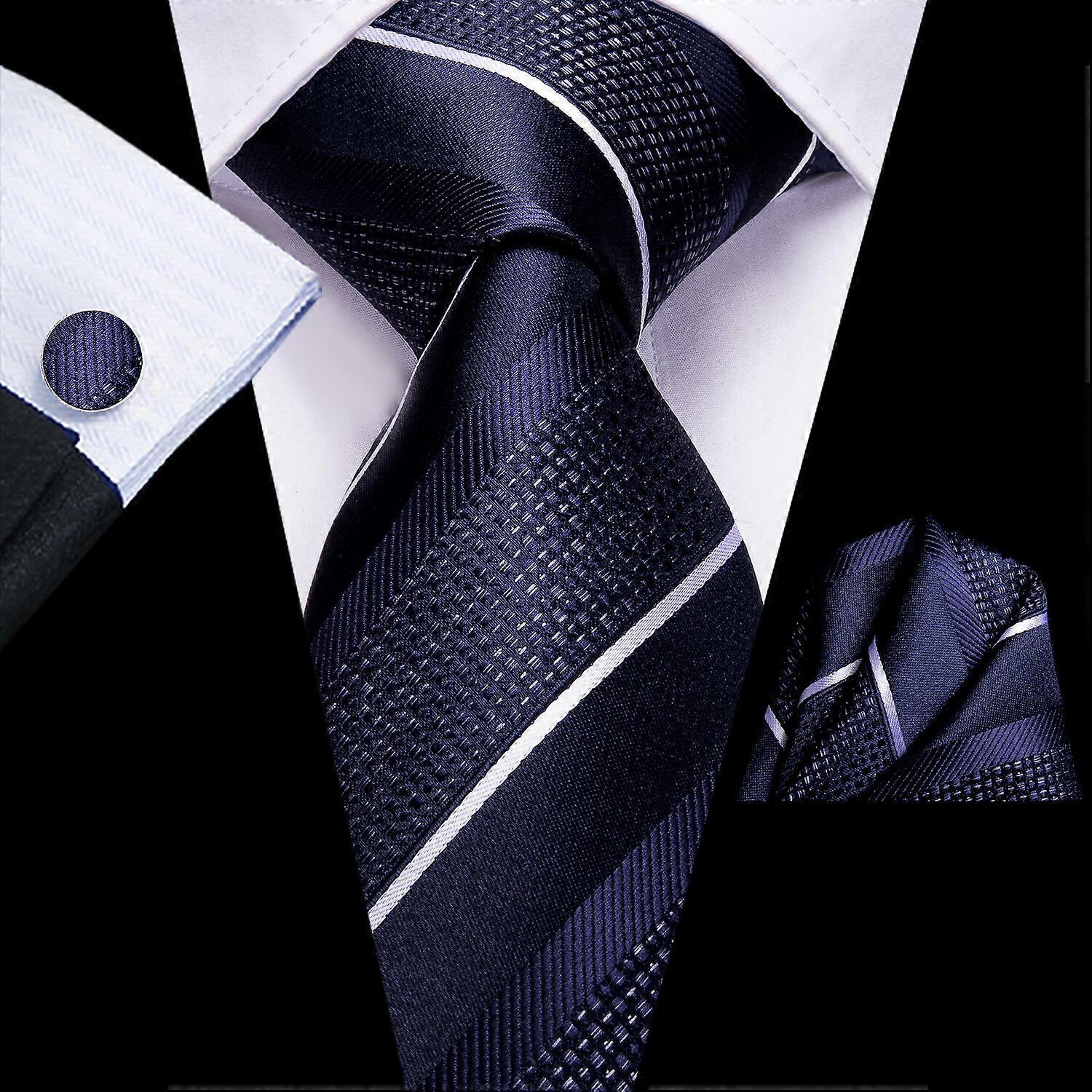 3pcs Mens Tie Floral Stripe Necktie Pocket Square Cufflinks Set Wedding Formal