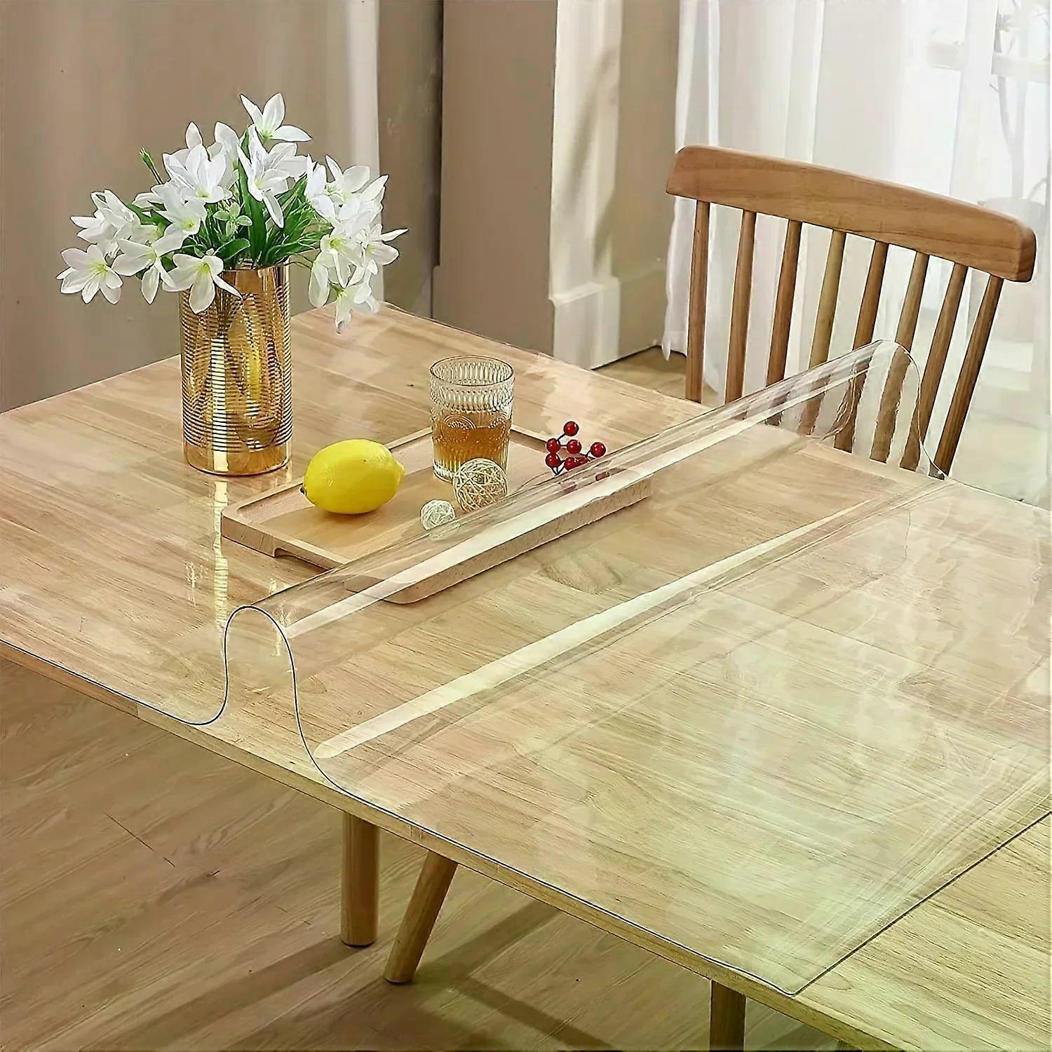 1.5mm Clear Desk Mat Waterproof Plastic Table Cover Protector Crystal Vinyl Tablecloth Clear Desk Pad Protector Easy to Clear