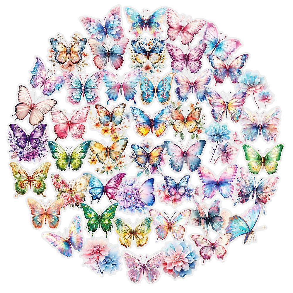 50PET Colorful Butterfly Stickers Waterproof Stickers DIY Water Cup Stickers Mobile Phone Case Decoration Stickers Scrapbooking