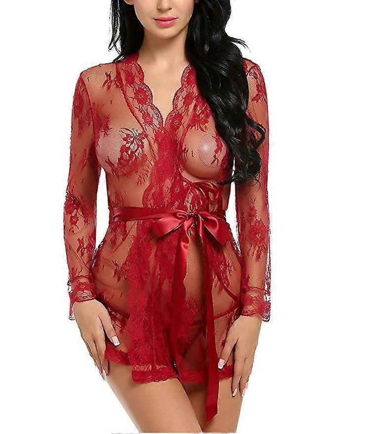 Sexy-Lingerie-Women-Lace-Nightwear-Sheer-Babydoll-Sleepwear-Kimono-Robe-US-FAST