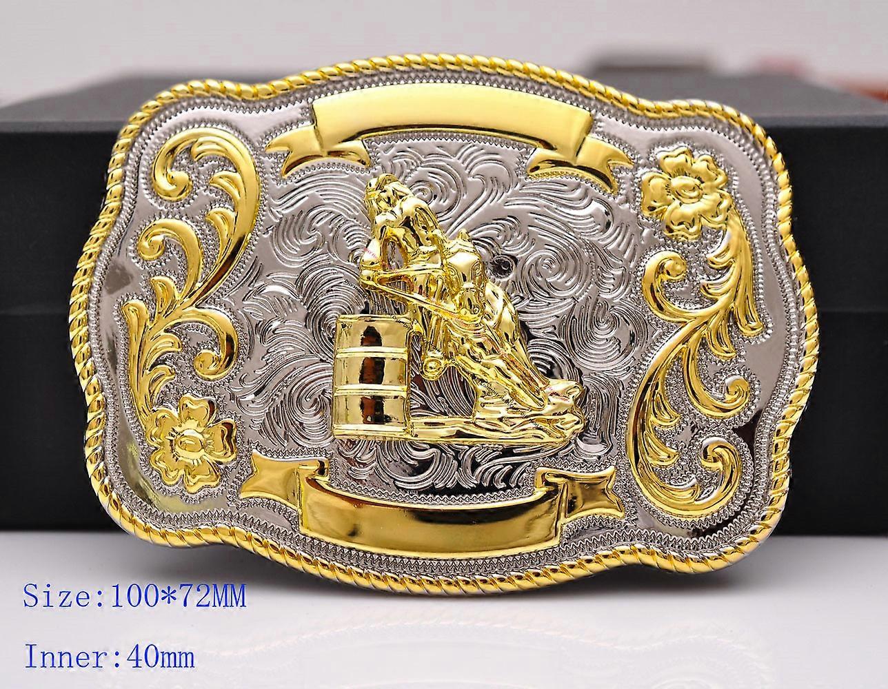 Texas Long Huge Ride Rodeo Cowboy Western Barrel Racing Gold Shine Belt Buckle